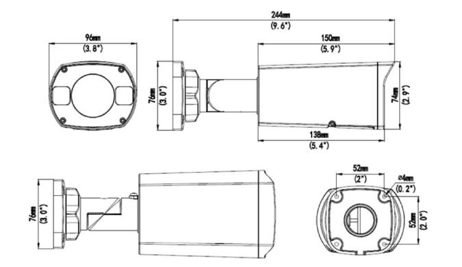 244 x 96 x74 mm (9.6” x 3.8” x 2.9”) |
